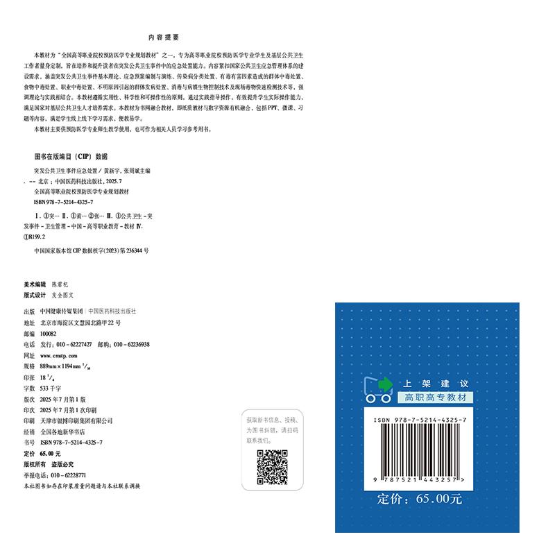 社 突发公共卫生事件应急处置全国高等职业院校预防医学专业规划教材 中国医药科技出版 张周斌 9787521443257 黄新宇