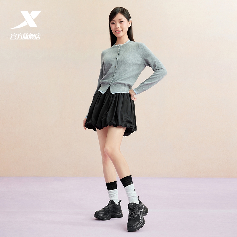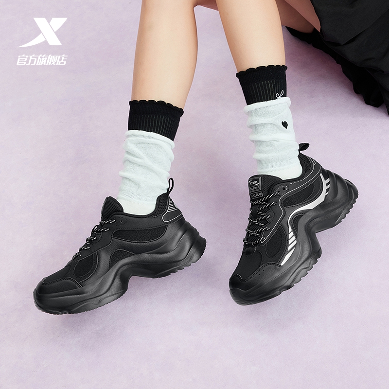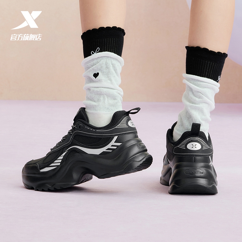 巨好看增高鞋 特步云朵鞋 轻便老爹鞋 女鞋 学生女 官方旗舰黑色运动鞋