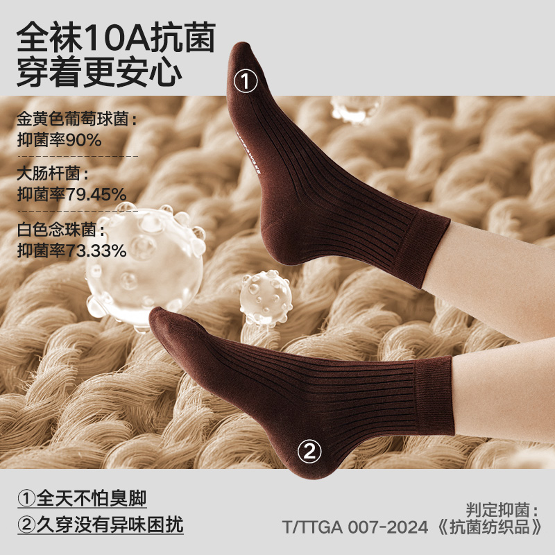 海澜之家女士中筒袜舒适百搭日常商务亲肤柔软透气罗纹袜子女