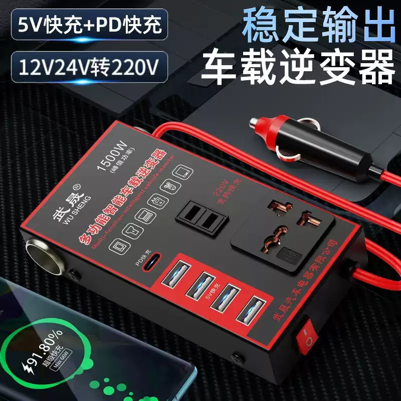 车载逆变器12V24V通用转220V汽车电源插座货车智能充电逆变转换器