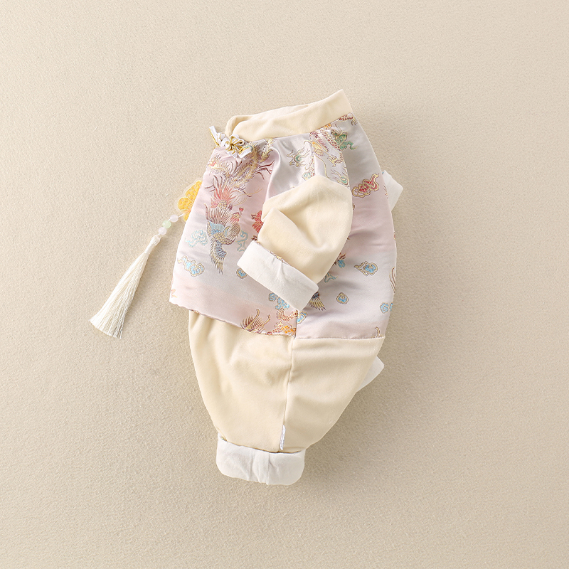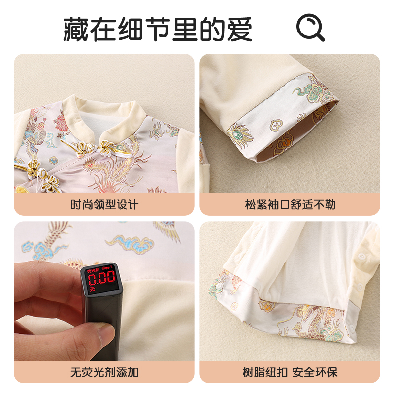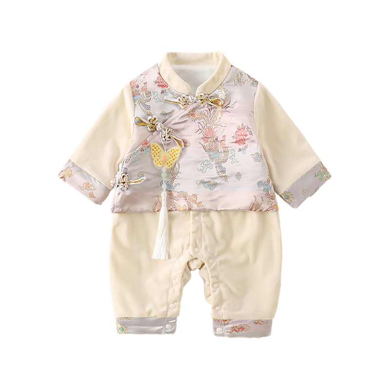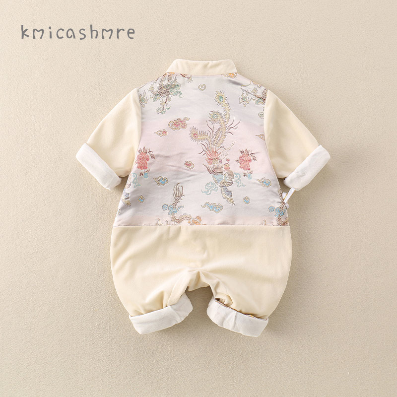 kmi新生儿婴儿春秋装 连体衣女宝宝哈衣满月百天抓周岁宴礼服 中式