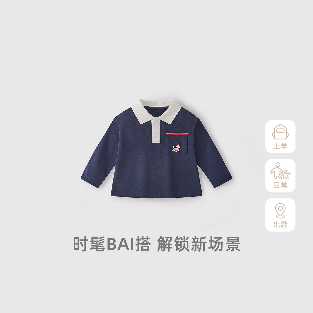 6宝宝秋季 2025新款 男童t恤长袖 帅气polo翻领衣服儿童上衣 7A抗菌
