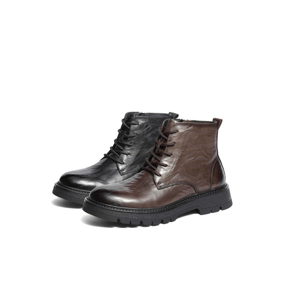 中帮机车靴子男生增高皮靴 2025新款 马丁靴男款 英伦风黑色高帮皮鞋