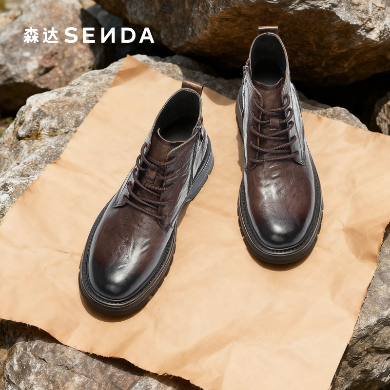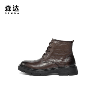 高帮厚底真皮户外工装 秋季 骆驼大黄靴马丁靴男款 靴 王俊凯同款