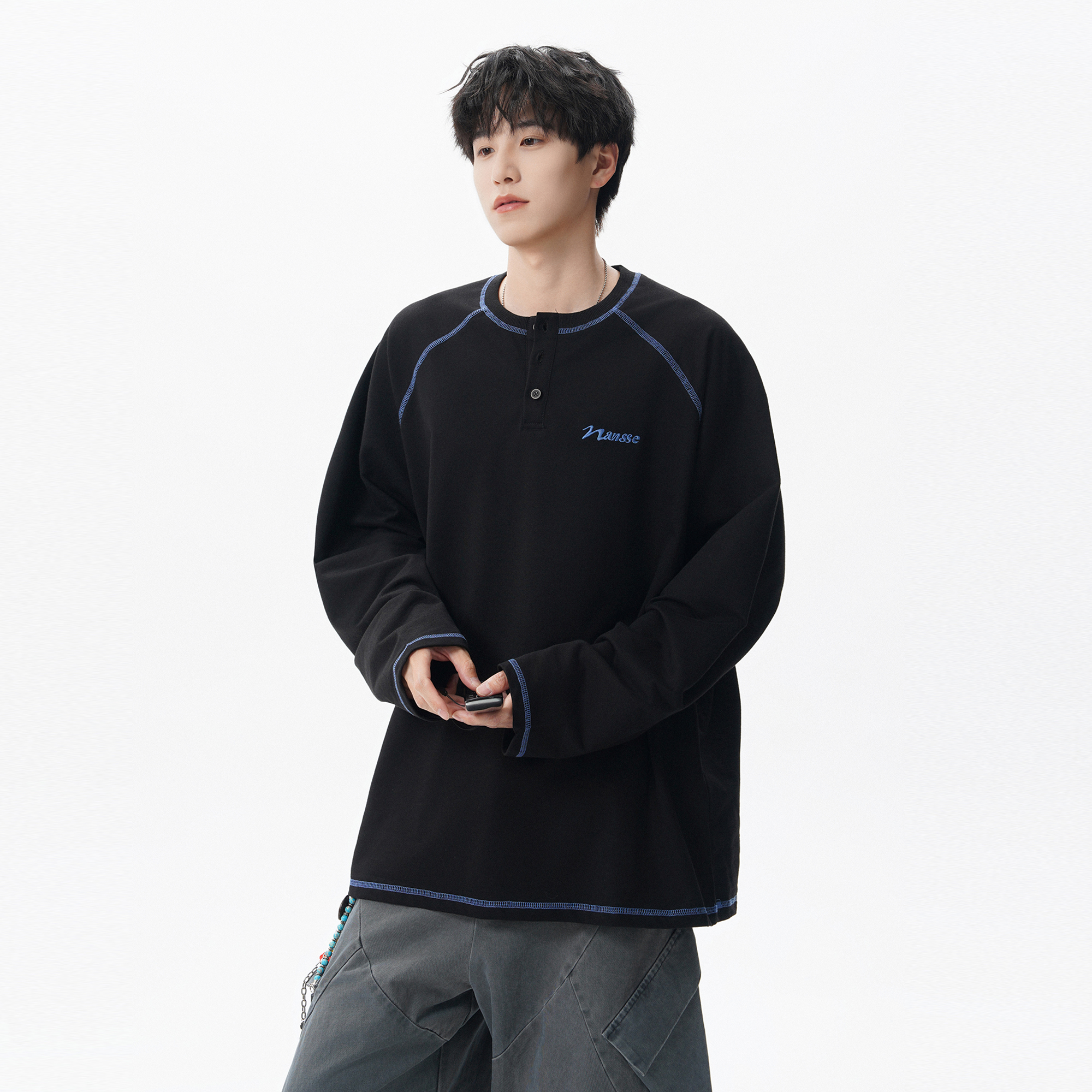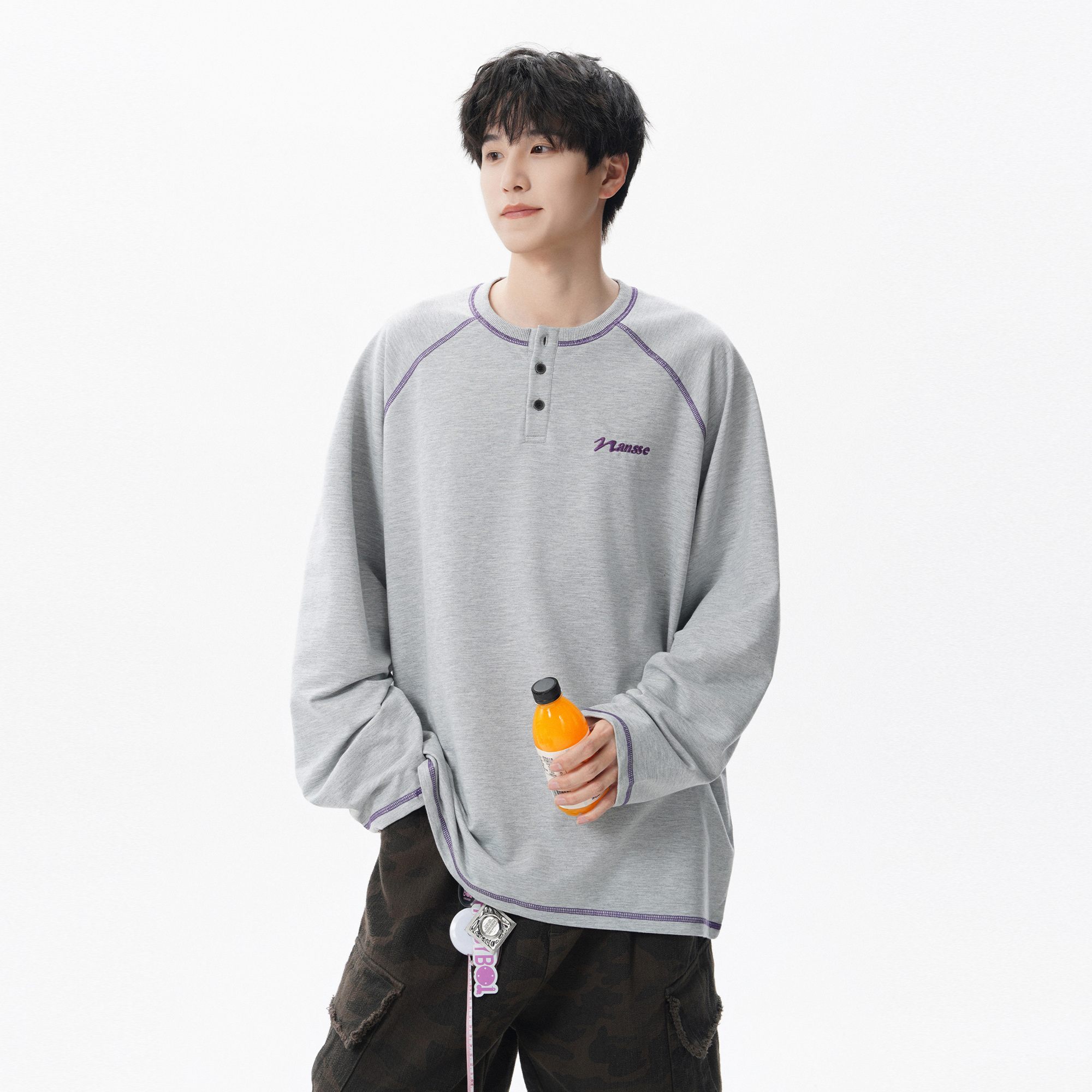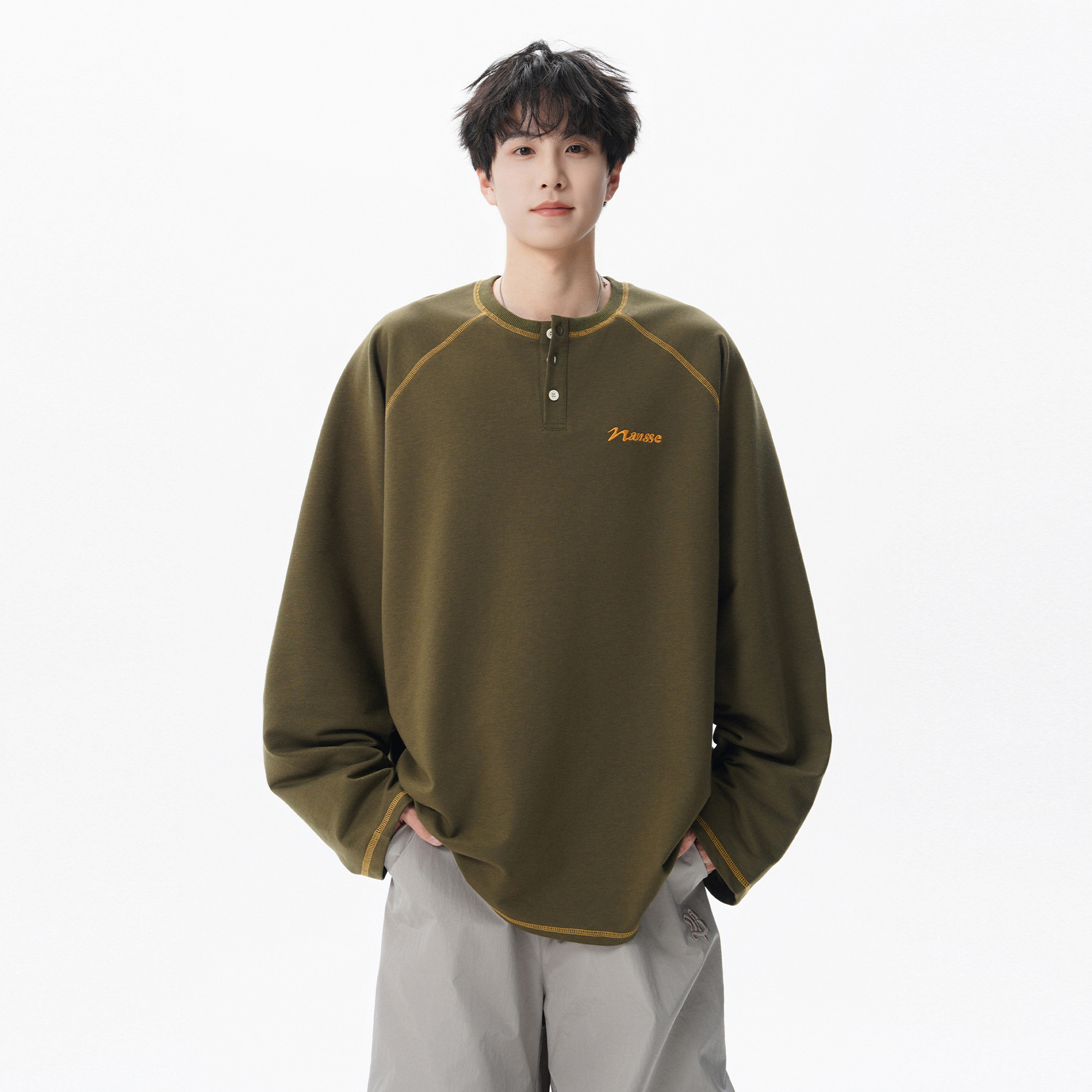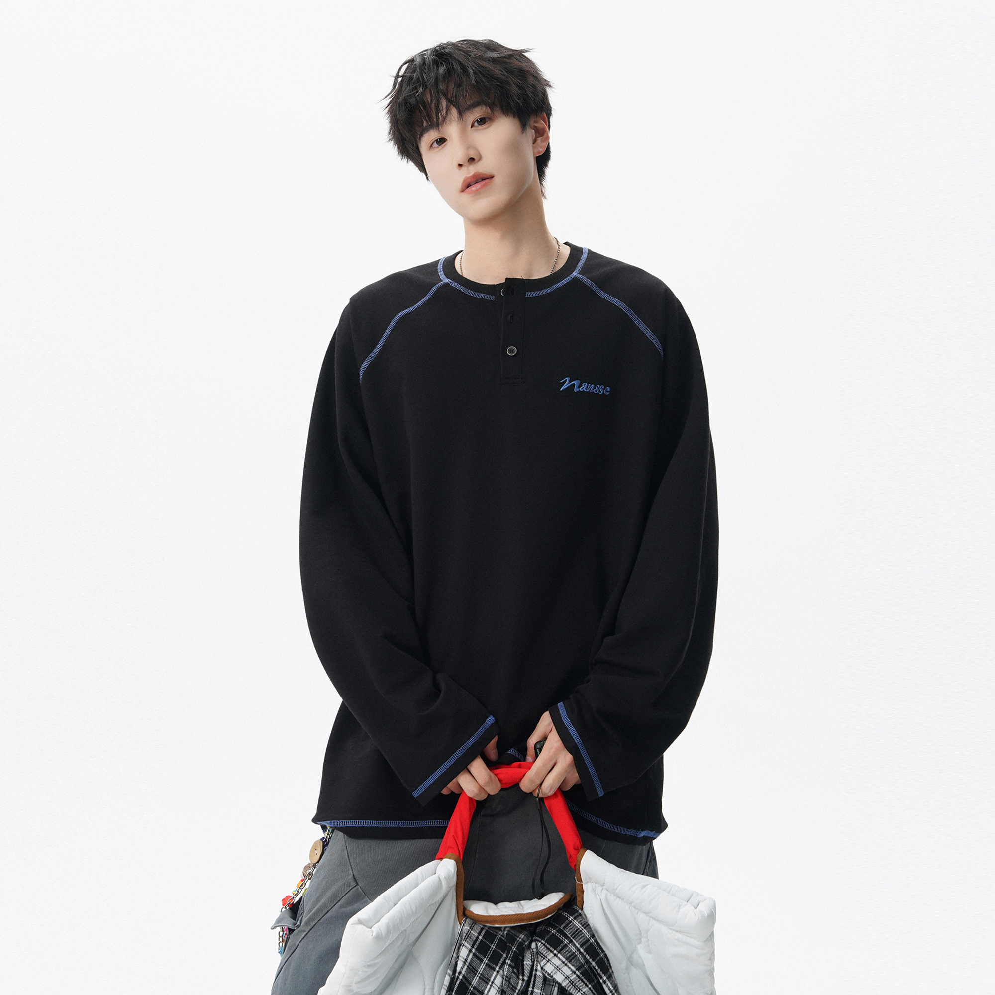 潮牌宽松休闲百搭打底衫 t恤男女2025春秋新款 卫衣 亨利领长袖 美式