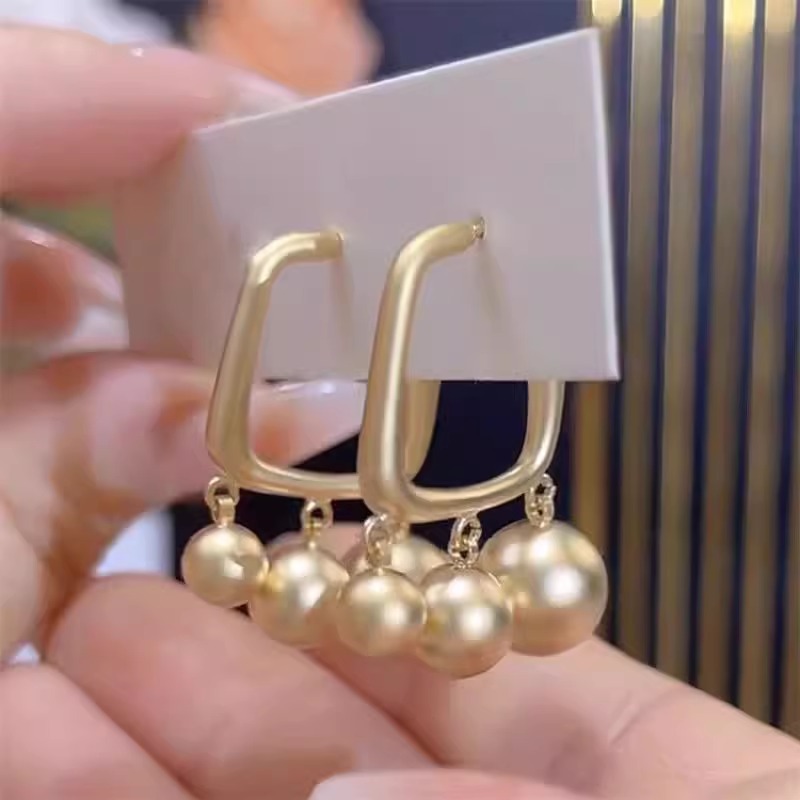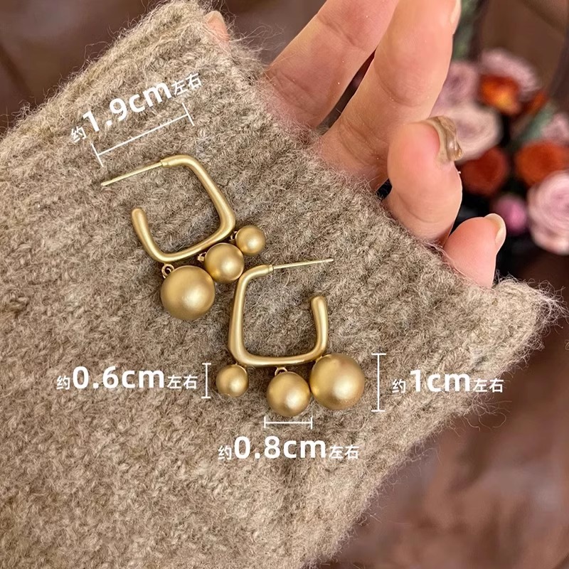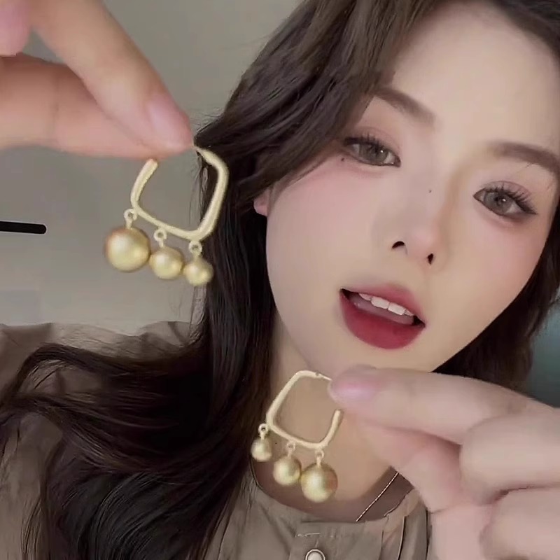 2025新款 小众方形金色耳钉冷淡风高级感圆球流苏耳环气质轻奢耳饰