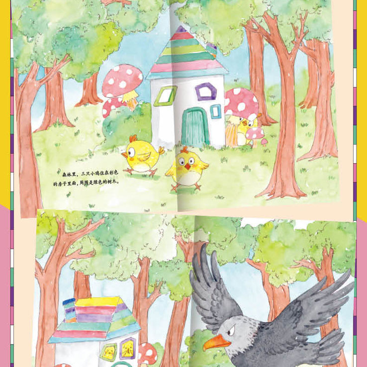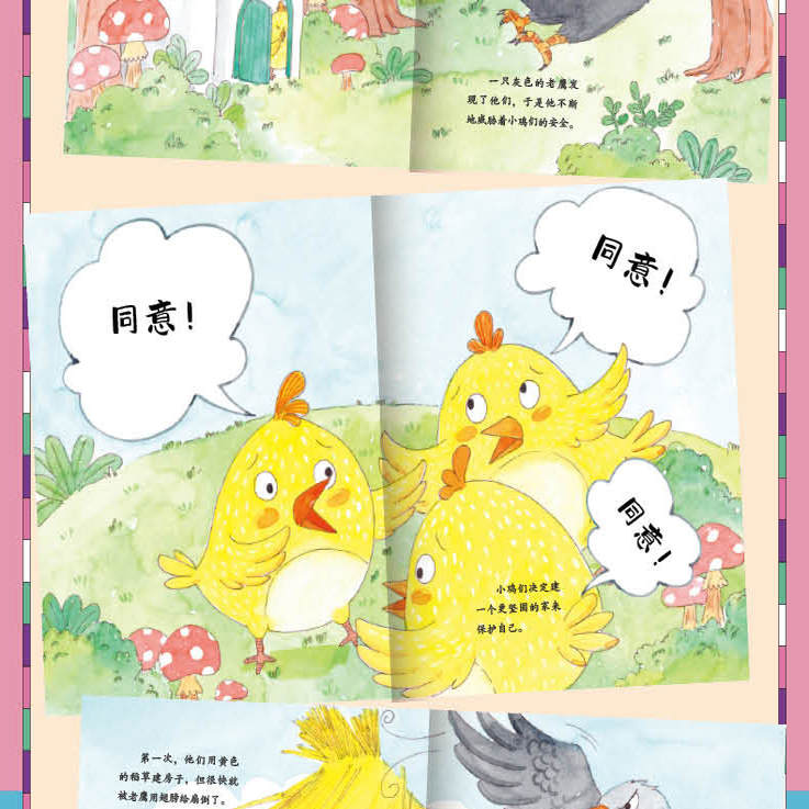 幼儿园大中小班A4大开本无拼音无英语绘本幼儿园亲子绘本3到6岁儿童绘本 三只小鸡智斗老鹰龙 精装 硬壳硬皮绘本