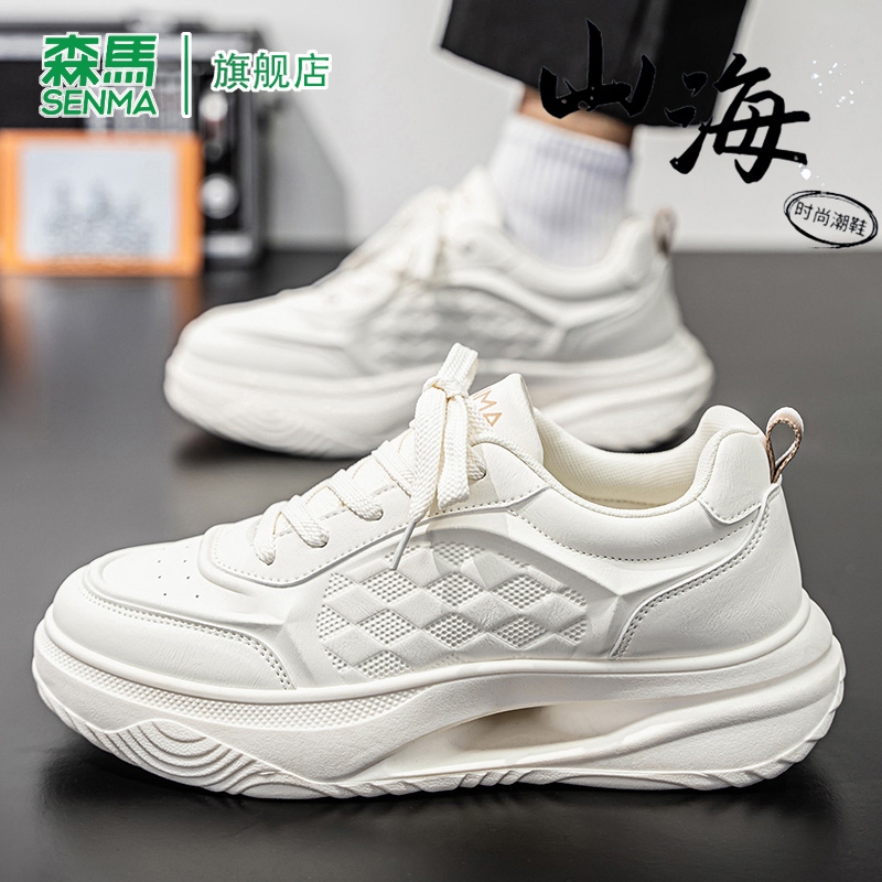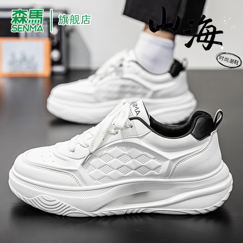 青少年厚底真皮运动防滑潮流老爹鞋 高级感百搭小白鞋 秋季 森马男鞋