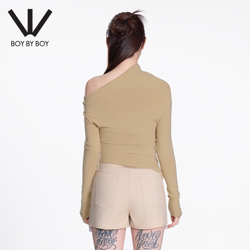 松弛感不对称露肩长袖 BOY潮牌25秋新款 T恤一字肩小上衣女 BOY