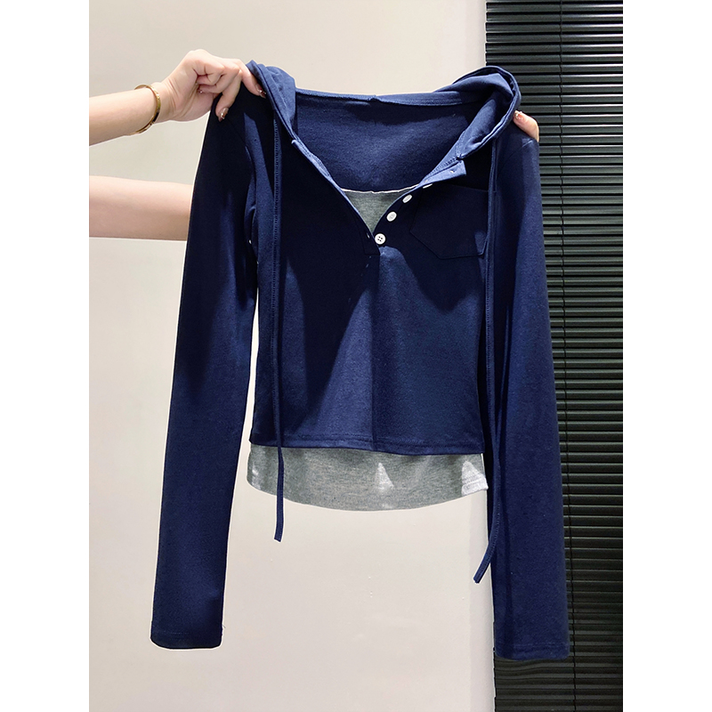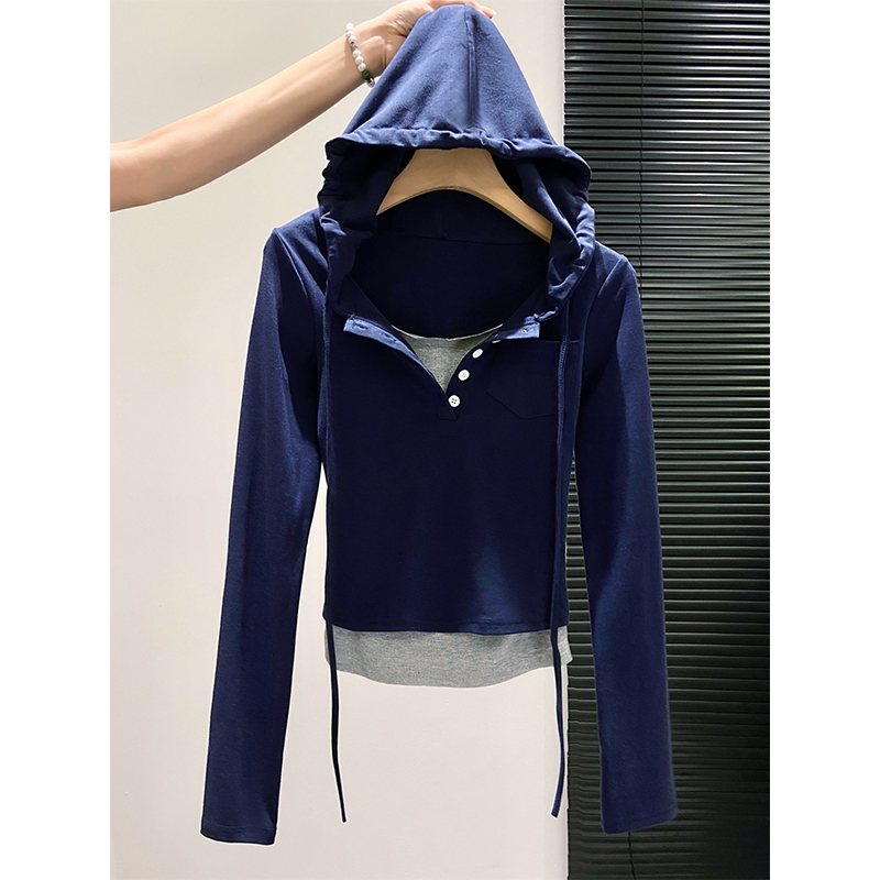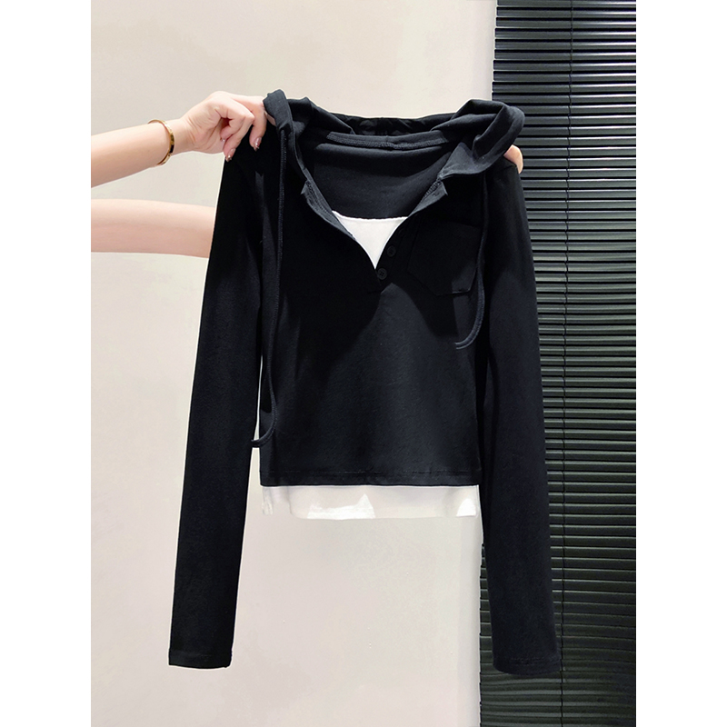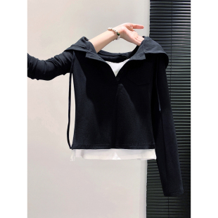 显瘦打底衫 假两件连帽长袖 设计感修身 外穿2025新款 上衣 t恤女秋季