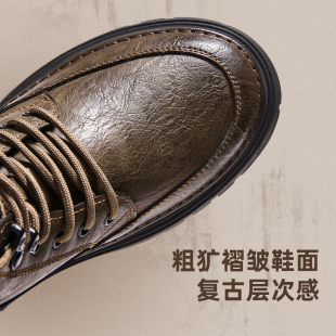 厚底工装 秋季 靴短靴黑色皮靴 英伦风高帮真皮鞋 MRA中帮马丁靴男款