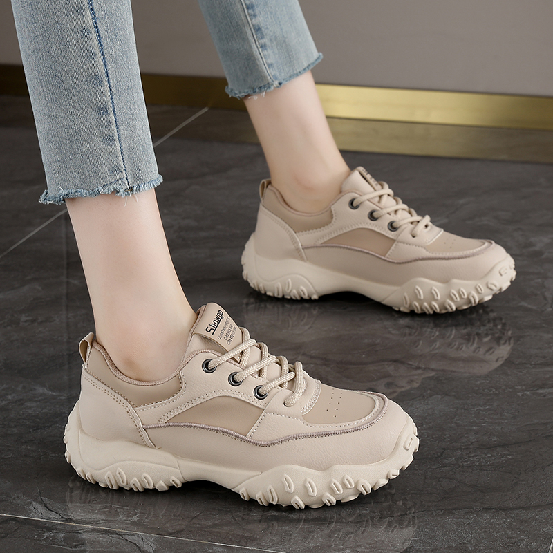 子秋季 女休闲旅游鞋 2025新款 防水防滑运动鞋 皮面老爹鞋 踩屎感女鞋