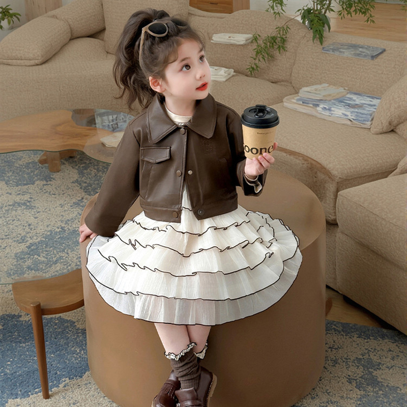小女孩机车夹克女宝宝短款 儿童套装 上衣 2025新款 女童皮衣外套秋装