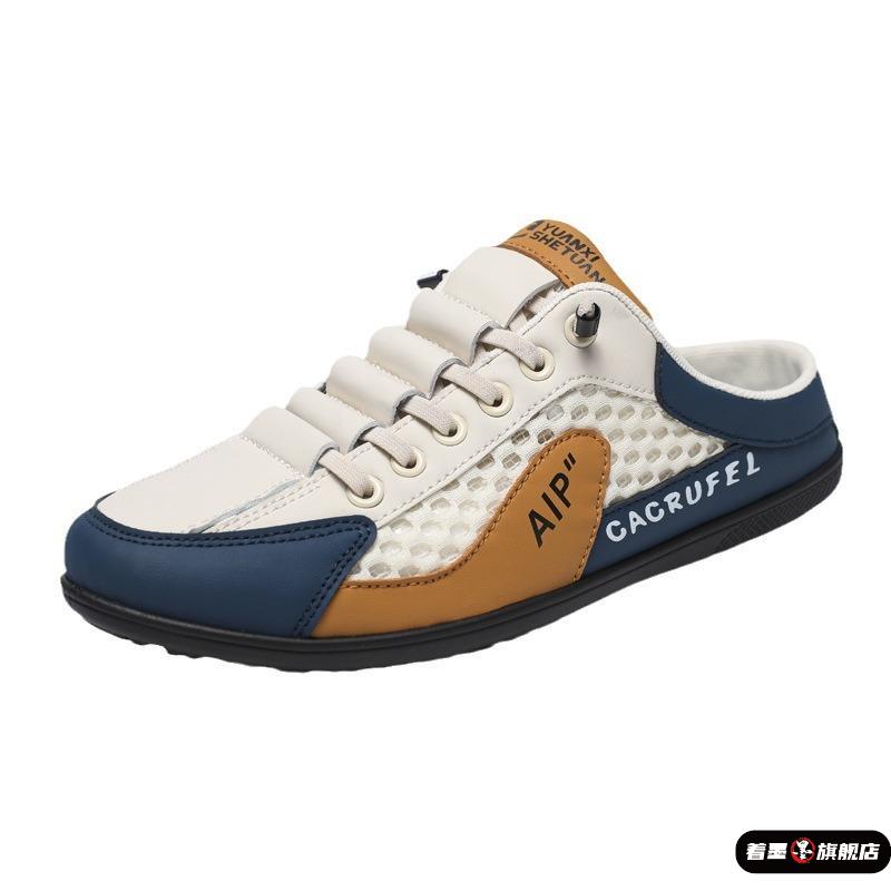 外穿透气网面一脚蹬半托无后跟休闲沙滩凉鞋 断码 秋季 男士 包头拖鞋