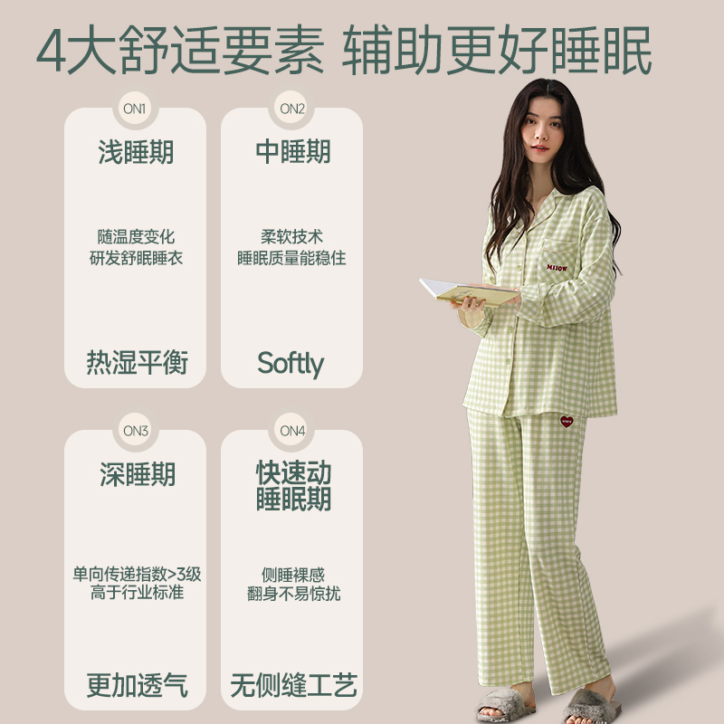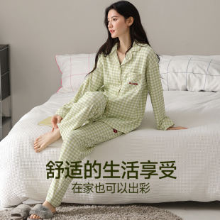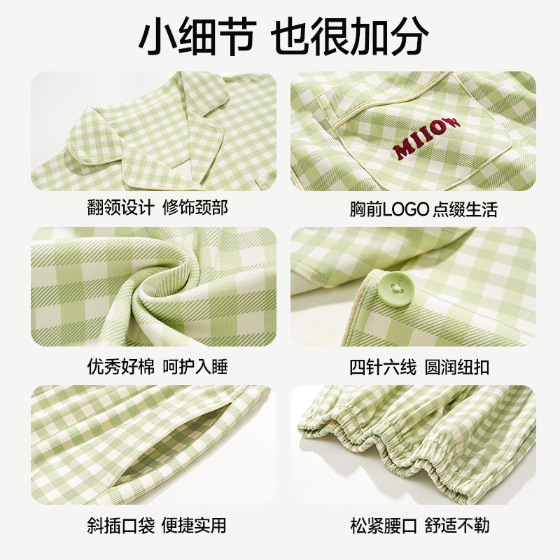 2025新款 猫人纯棉睡衣套装 长裤 秋冬长袖 女士家居服可外穿全棉 女款