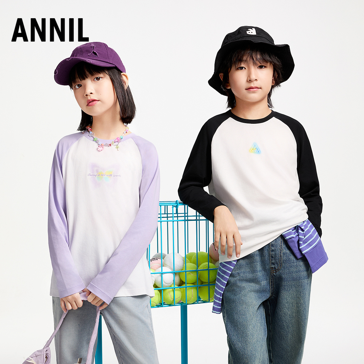 上衣2025秋新款 打底衫 休闲T恤潮百搭 纯棉圆领长袖 安奈儿男女童装