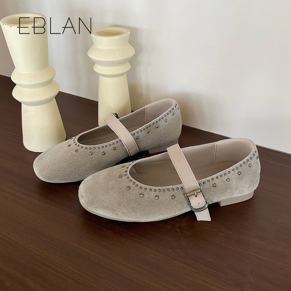 复古铆钉芭蕾舞单鞋 EBLAN 秋季 女2025新款 伊伴民族风勃肯玛丽珍鞋