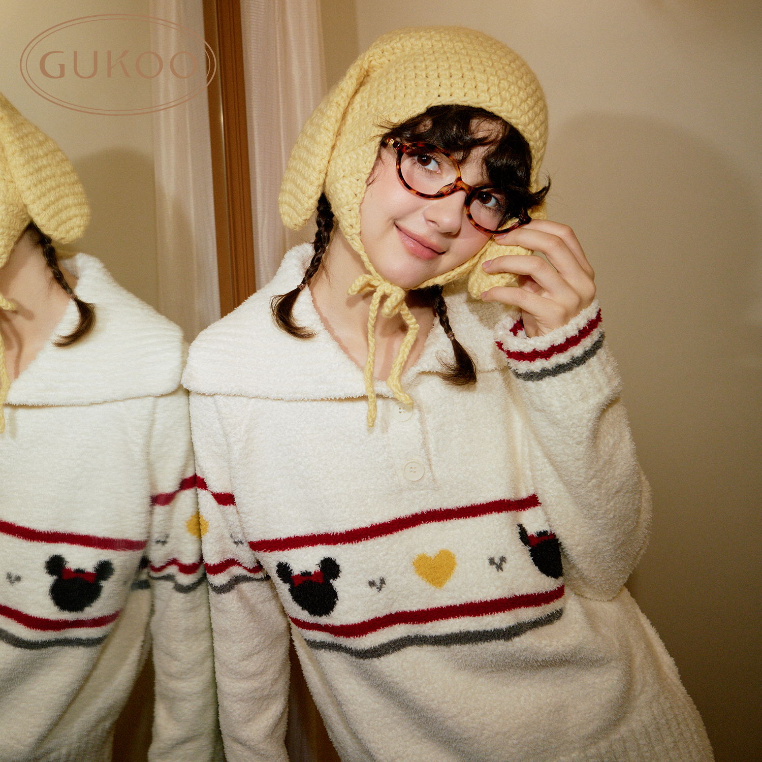 半边绒保暖女士家居服套装 迪士尼联名新款 果壳睡衣女冬季 Gukoo