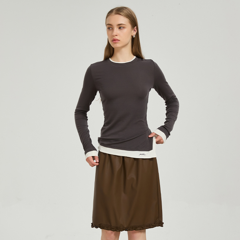 莱赛尔羊毛 T恤 可单穿叠穿 女士侧开衩撞色假两件长袖 PetitBari