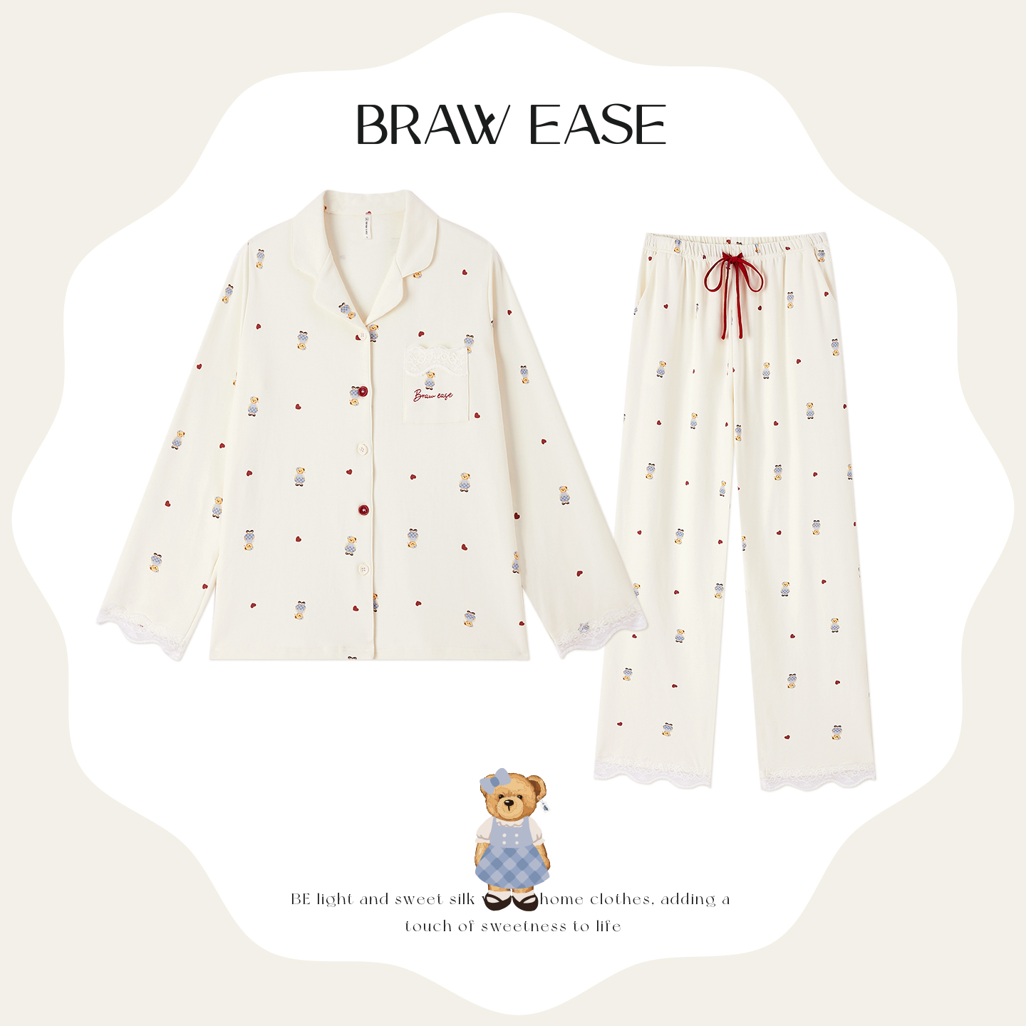 秋冬 秋春蕾丝家居服秋天2025新款 BE泰迪熊联名纯棉睡衣女秋季 长袖