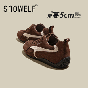 女款 休闲运动鞋 2025秋季 棕色内增高设计感小众时尚 新款 人本德训鞋
