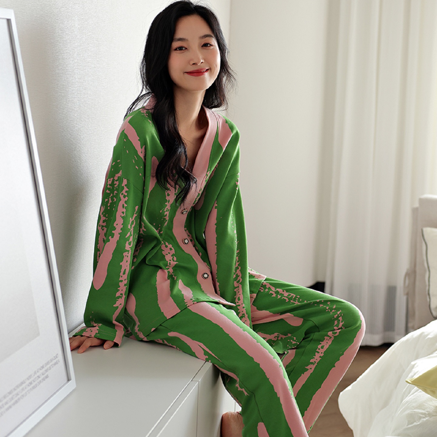 纯棉长袖 女士秋天个性 开衫 套装 家居服 2025新款 南极人睡衣女春秋季