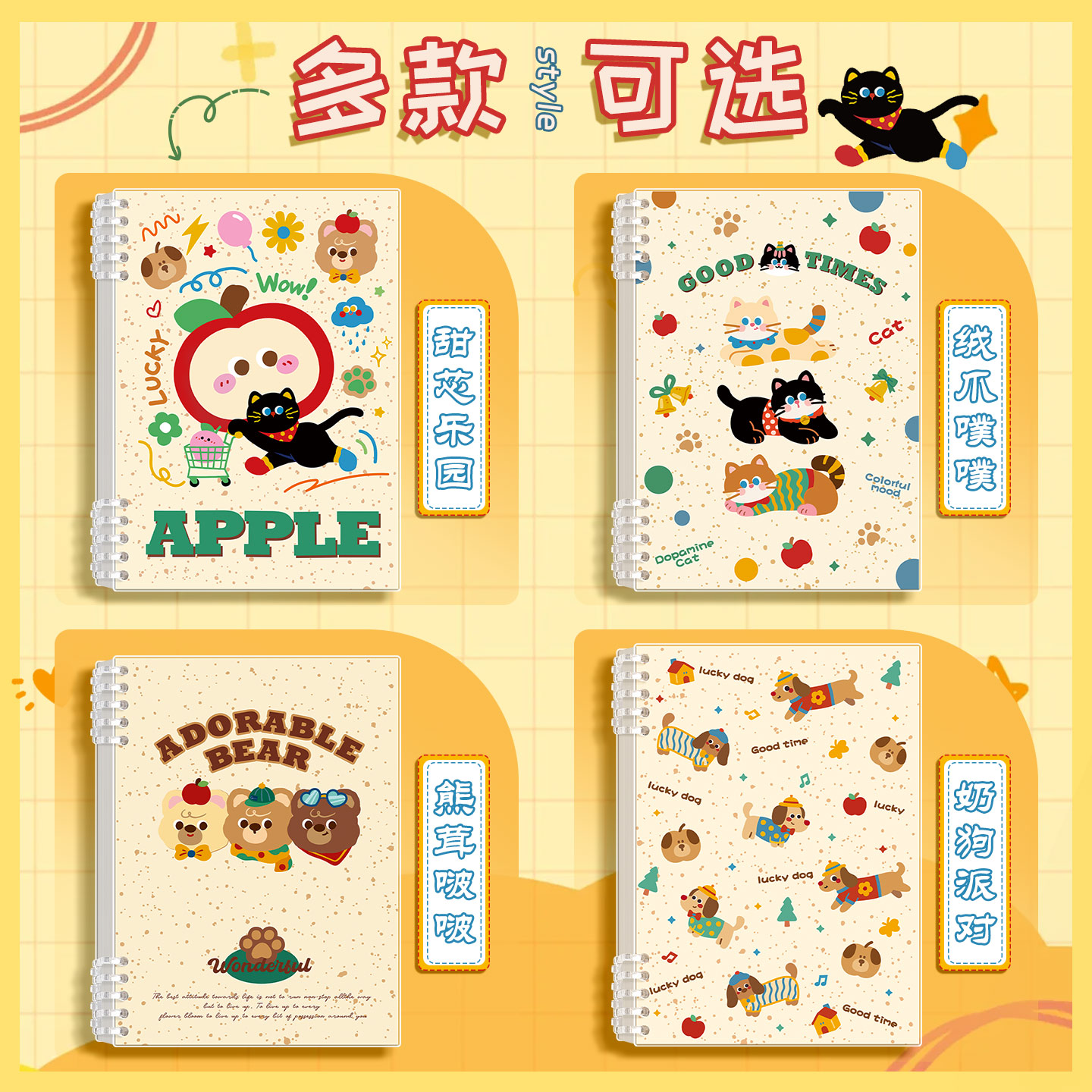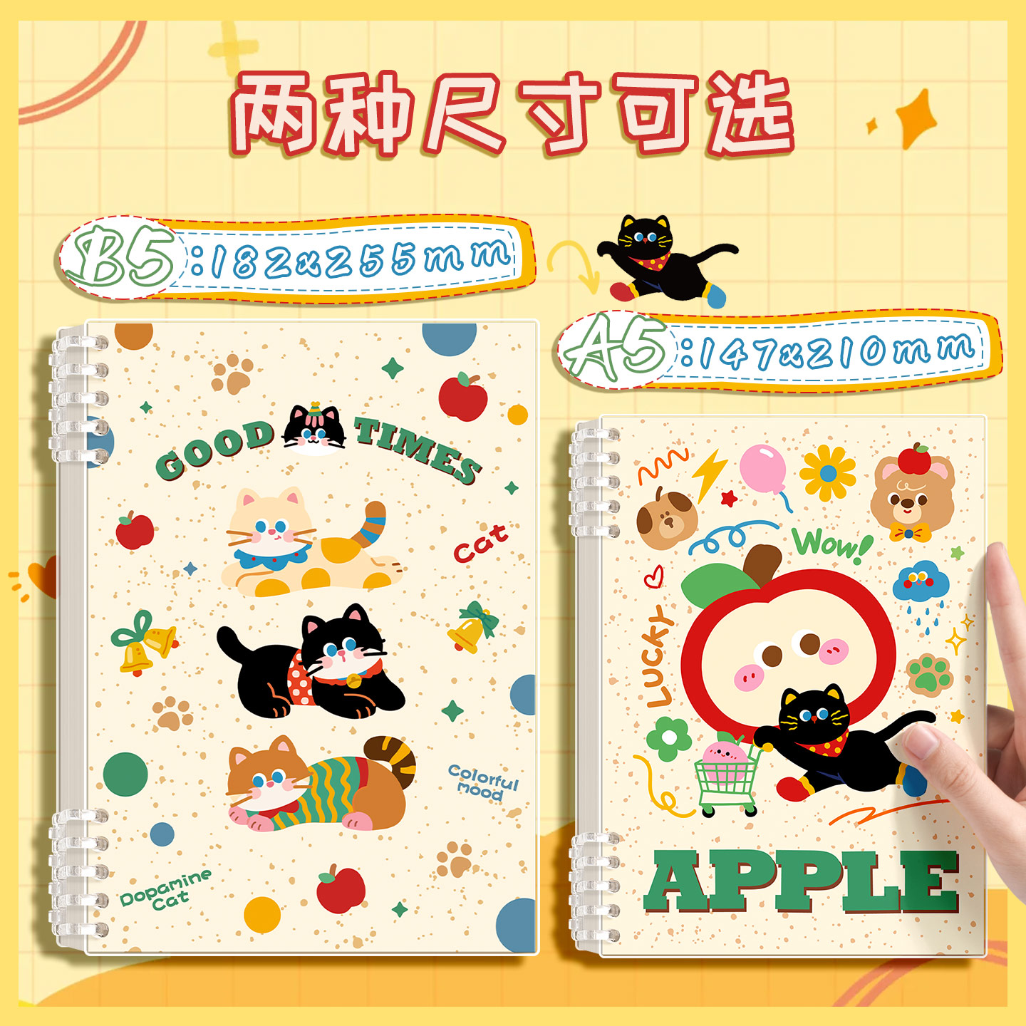 美式 泼墨动物活页本b5笔记本本子不硌手初高中生专用作业本可拆扣环线圈本大学生考研日记本加厚猫咪a5记事本
