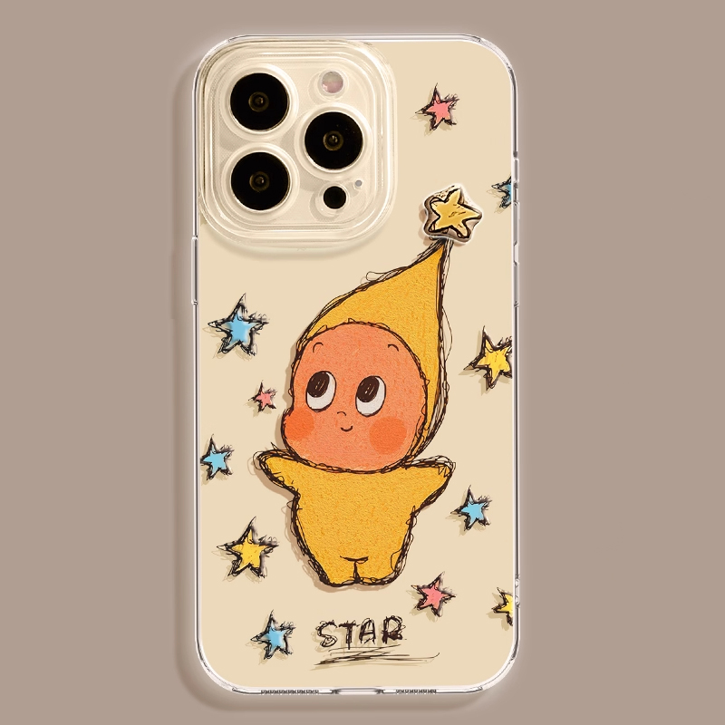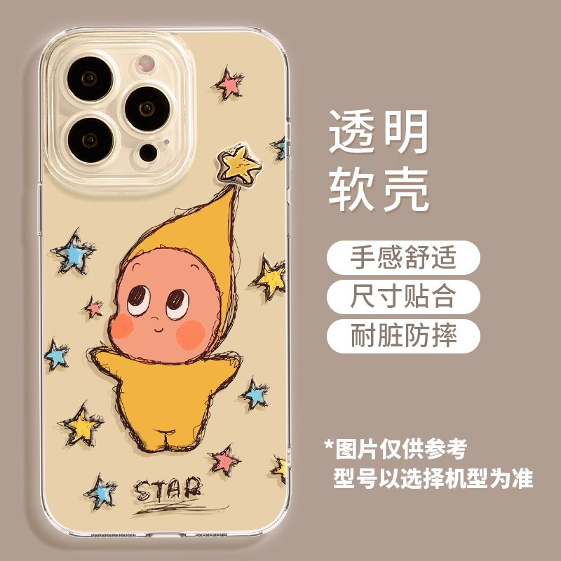 可爱星星小火人适用苹果16promax手机壳15小众xr新款 14卡通13手链plus创意12情侣17iPhone女17全包xs防摔软壳