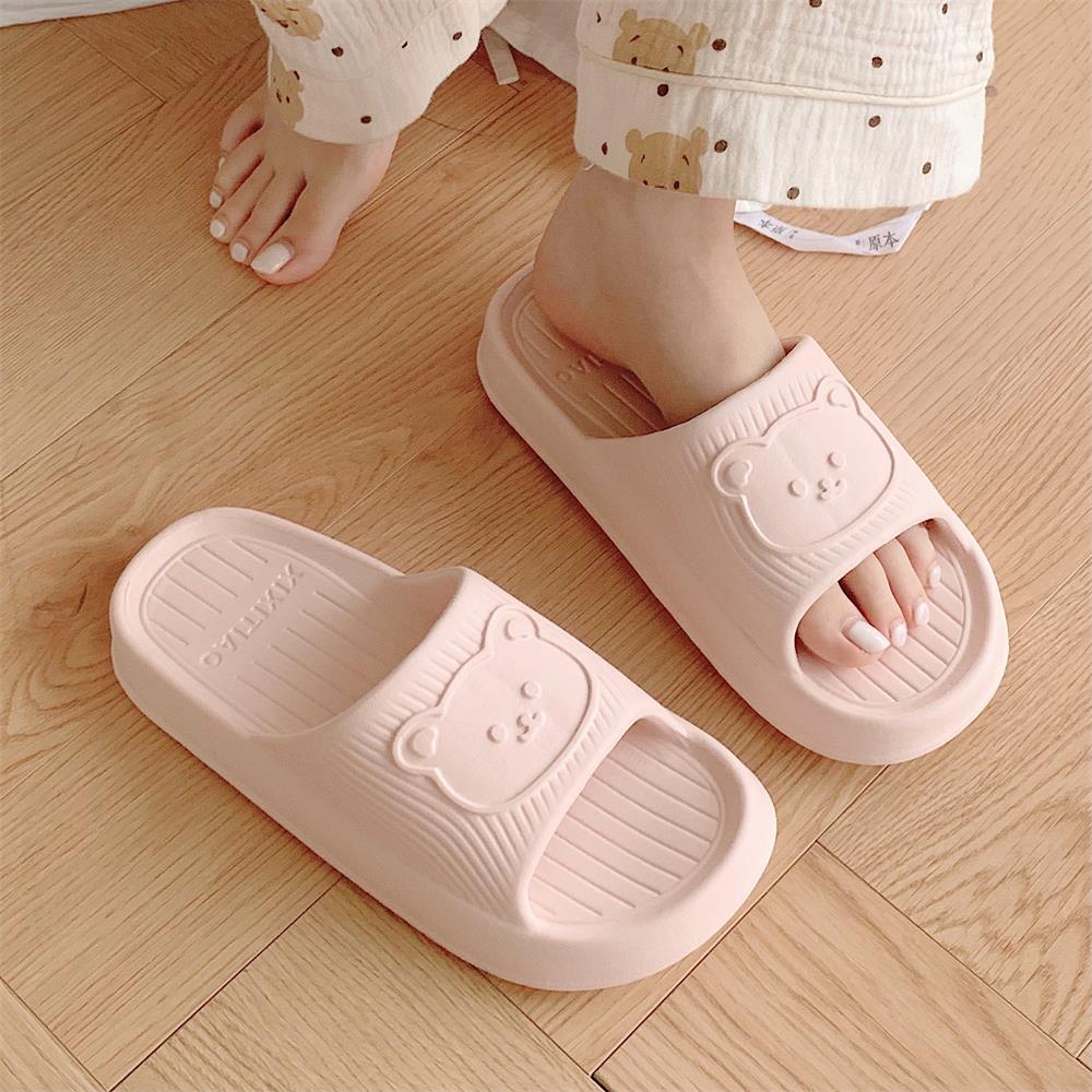可爱粉色小熊拖鞋 女夏情侣踩屎感软底室内防滑洗澡凉拖男