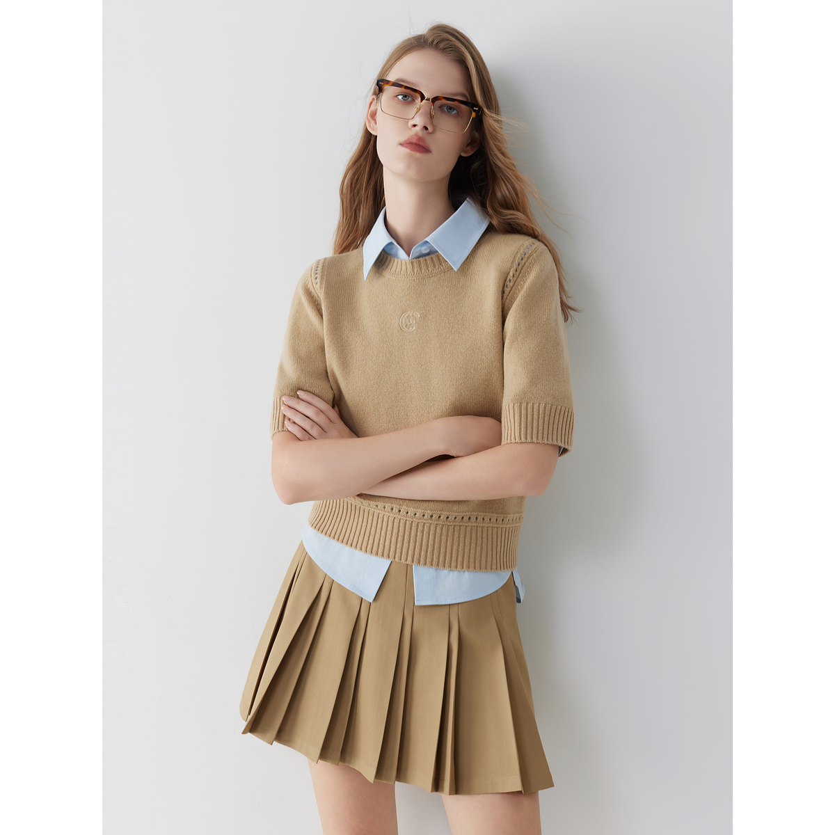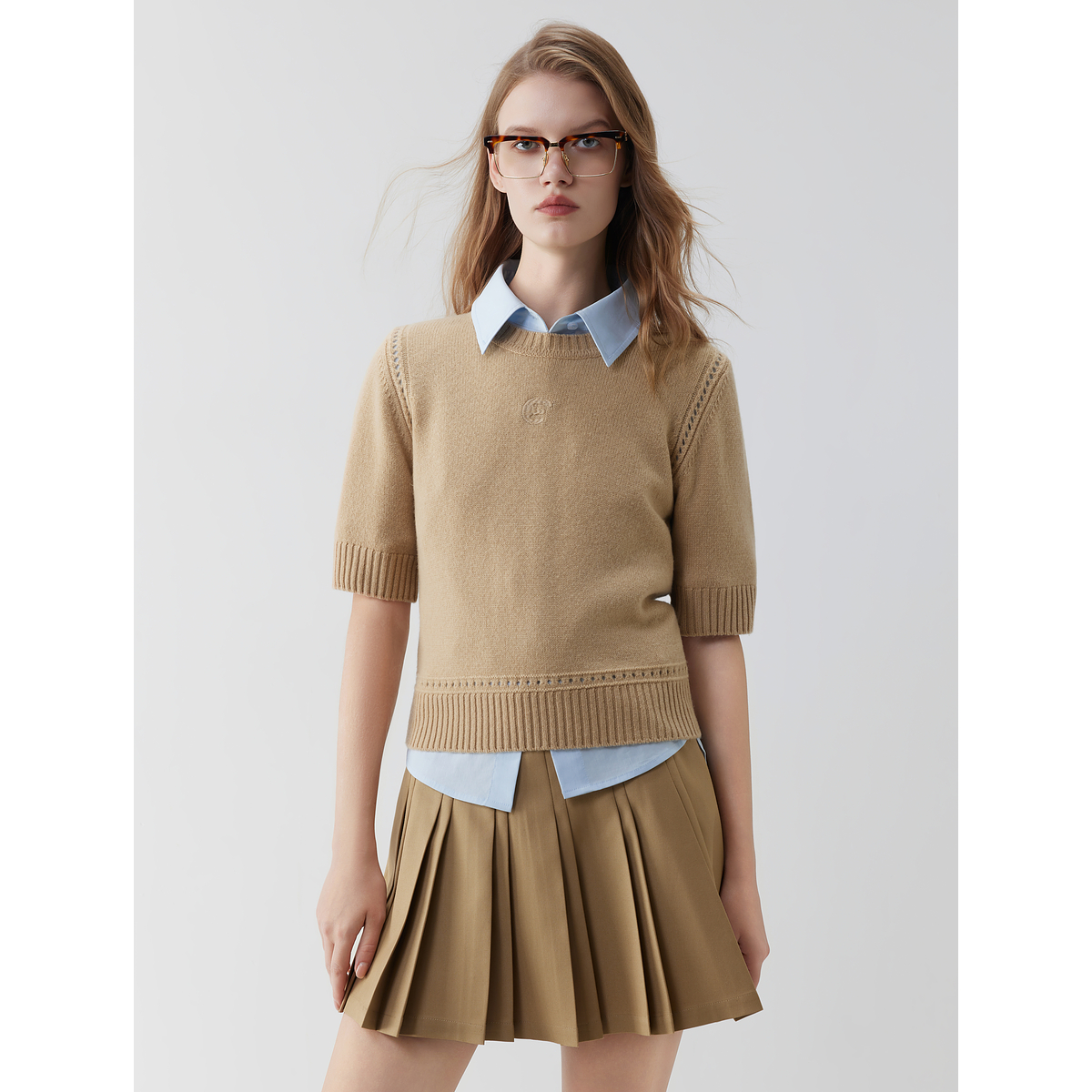 圆领短袖 HM女装 新款 2025秋季 气质保暖休闲毛衣1169364 毛针织衫