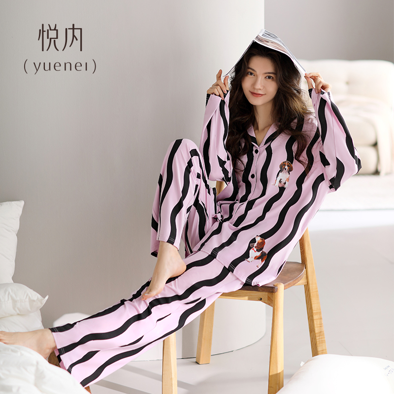 秋季 女款 秋天家居服条纹可外穿高级感 纯棉长袖 悦内睡衣女士春秋款