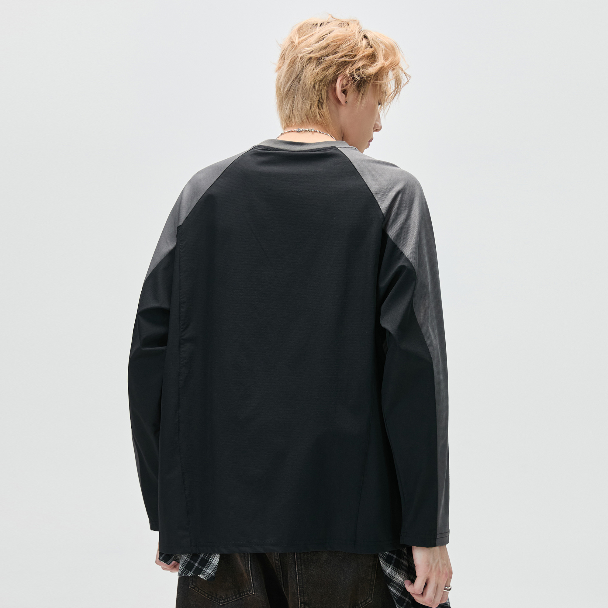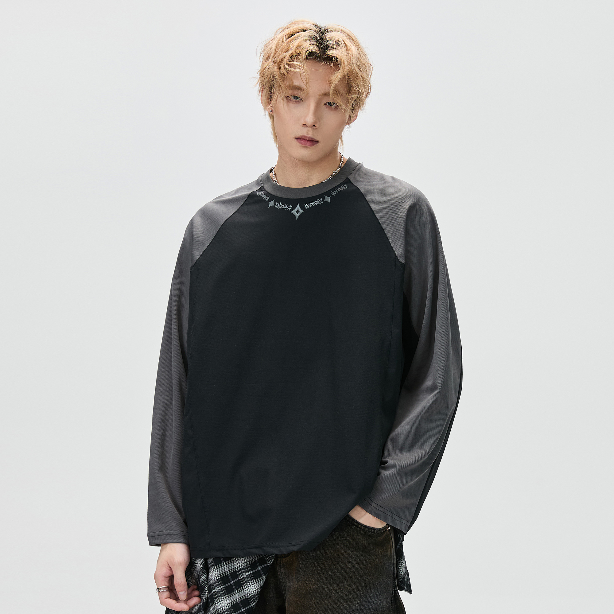 撞色插肩袖 潮牌休闲情侣圆领打底衫 长袖 美式 上衣 t恤男秋季 ALLIN