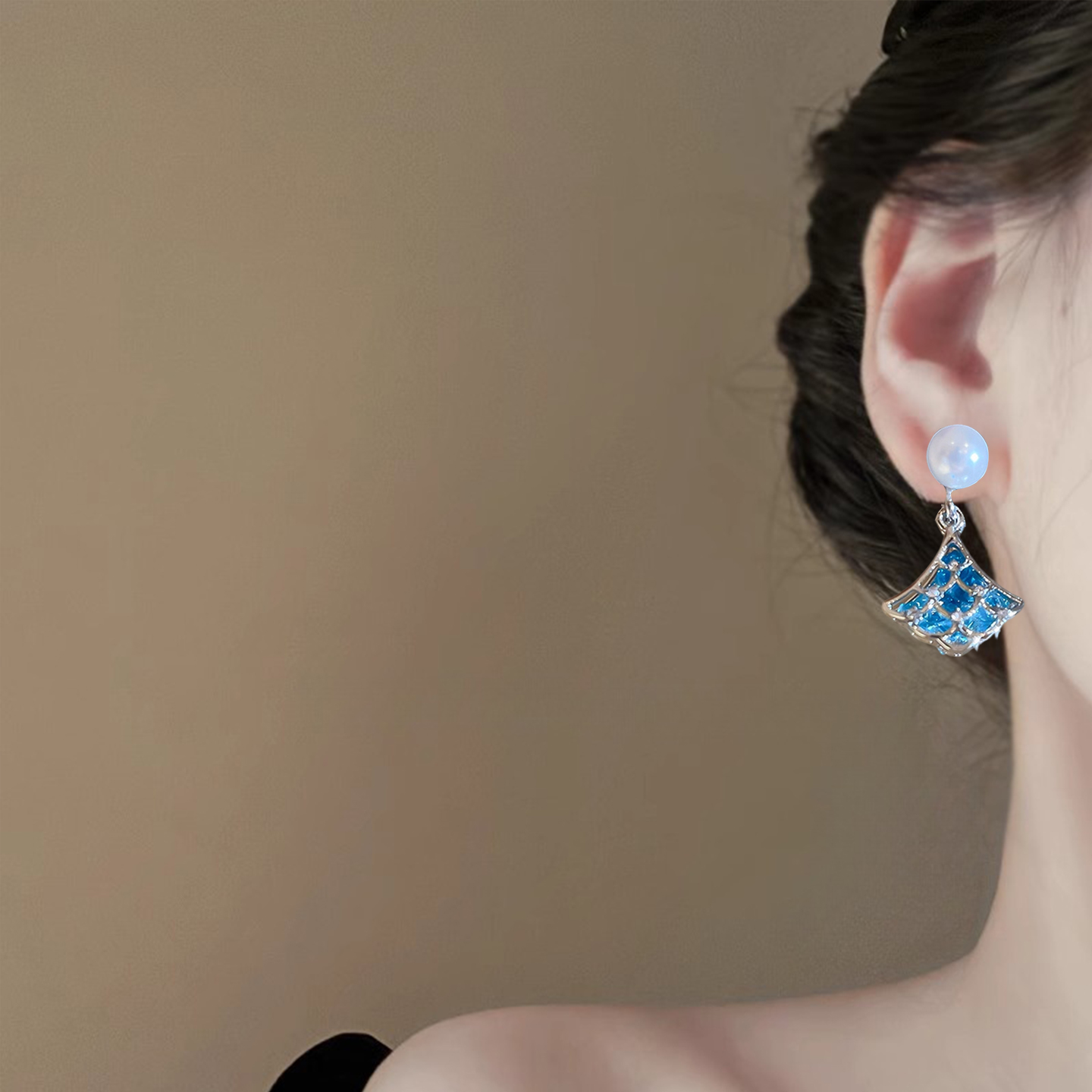 蓝海湖 精致珍珠水晶树叶镂空吊坠耳环女设计感耳钉百搭耳饰耳套