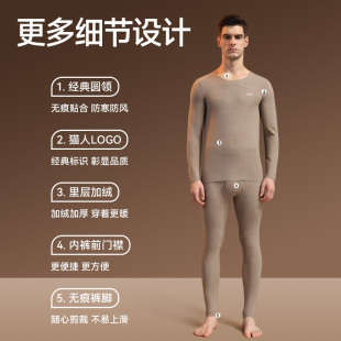 套装 猫人保暖内衣男士 加绒德加厚无痕发热秋衣秋裤 冬季 2025年新款