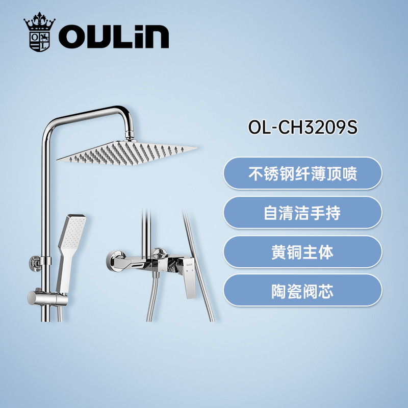 家用自清洁淋浴喷头全铜主体不锈钢顶喷 欧琳淋浴花洒套装 活动