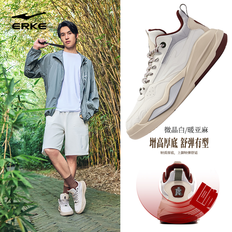 厚底百搭运动鞋 唐宫夜苑鸿星尔克高帮休闲板鞋 男鞋 新款 男 2025冬季