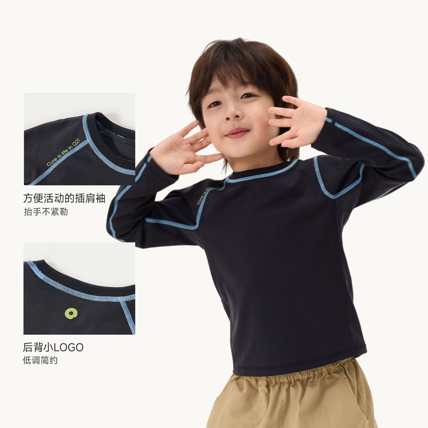 长T恤2025年秋新款 弹力打底衫 上衣 户外疾飞速干长袖 安踏儿童装