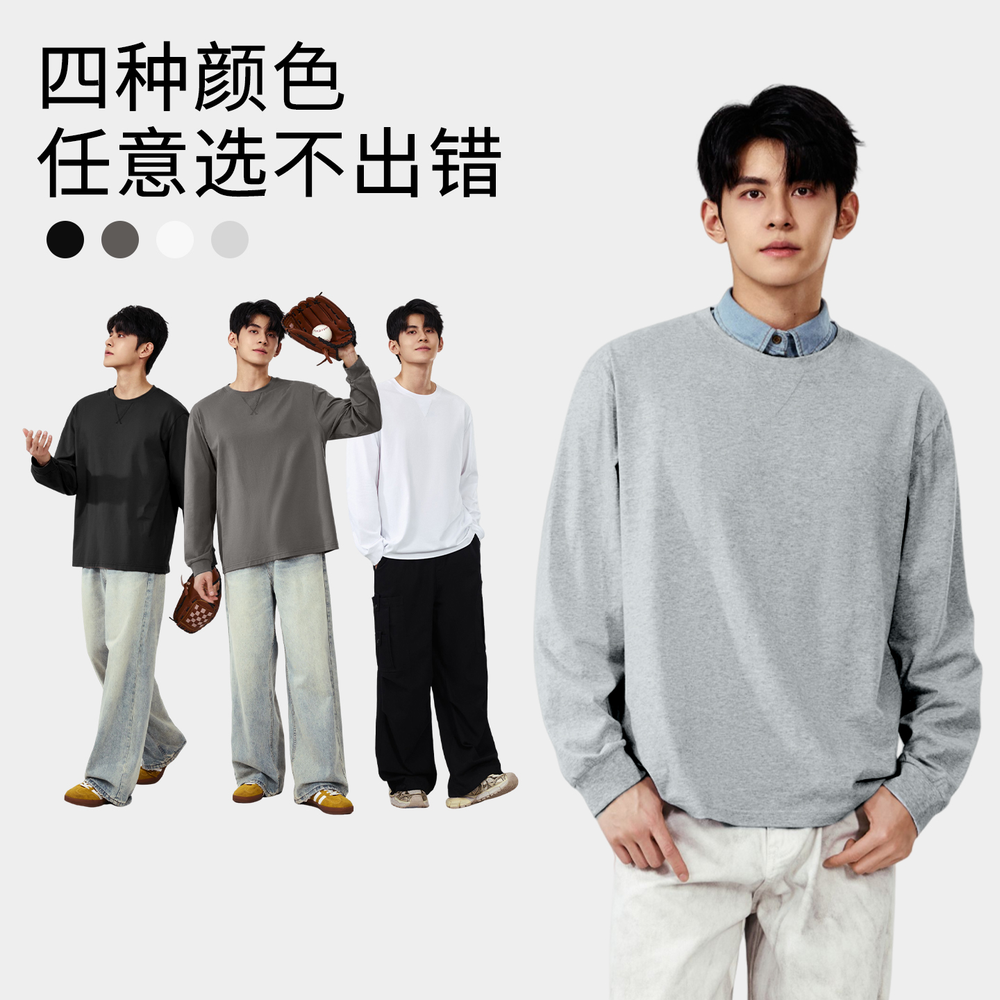 班尼路S&K系列男T恤纯棉罗纹三角领纯色套头衫 男青年潮流百搭长袖