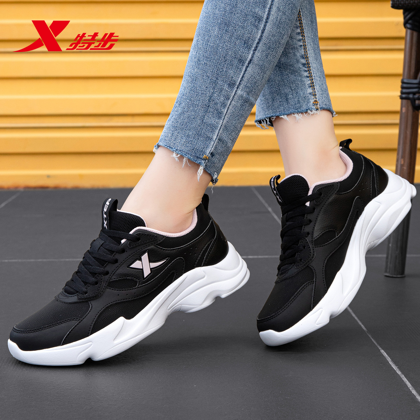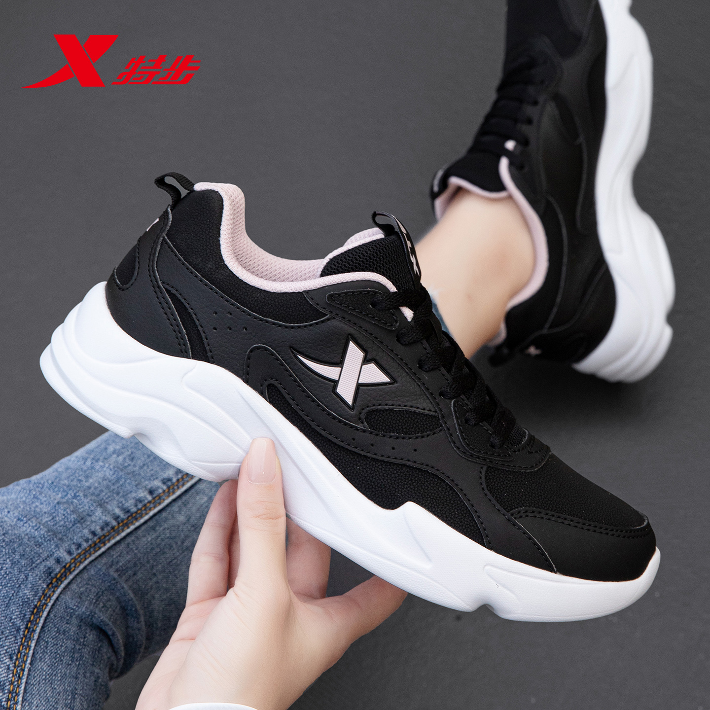 运动鞋 新款 革面休闲鞋 厚底鞋 鸿星尔克男鞋 轻便网面透气跑步鞋 秋季