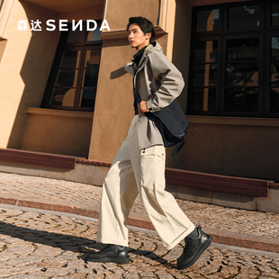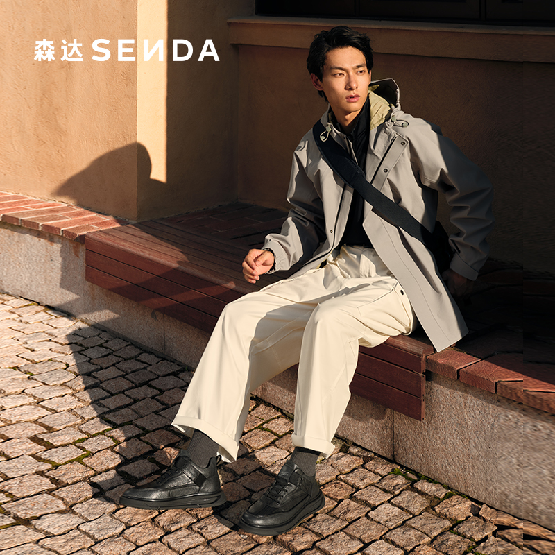 男2025冬新款 保暖鞋 商场同款 休闲板鞋 1ZK01DD5 厚底工装 森达高帮鞋