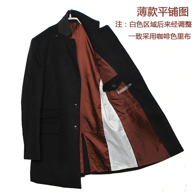 韩版 长款 呢子加厚风衣外套 2025春秋季 V37黑色高级感毛呢大衣男款