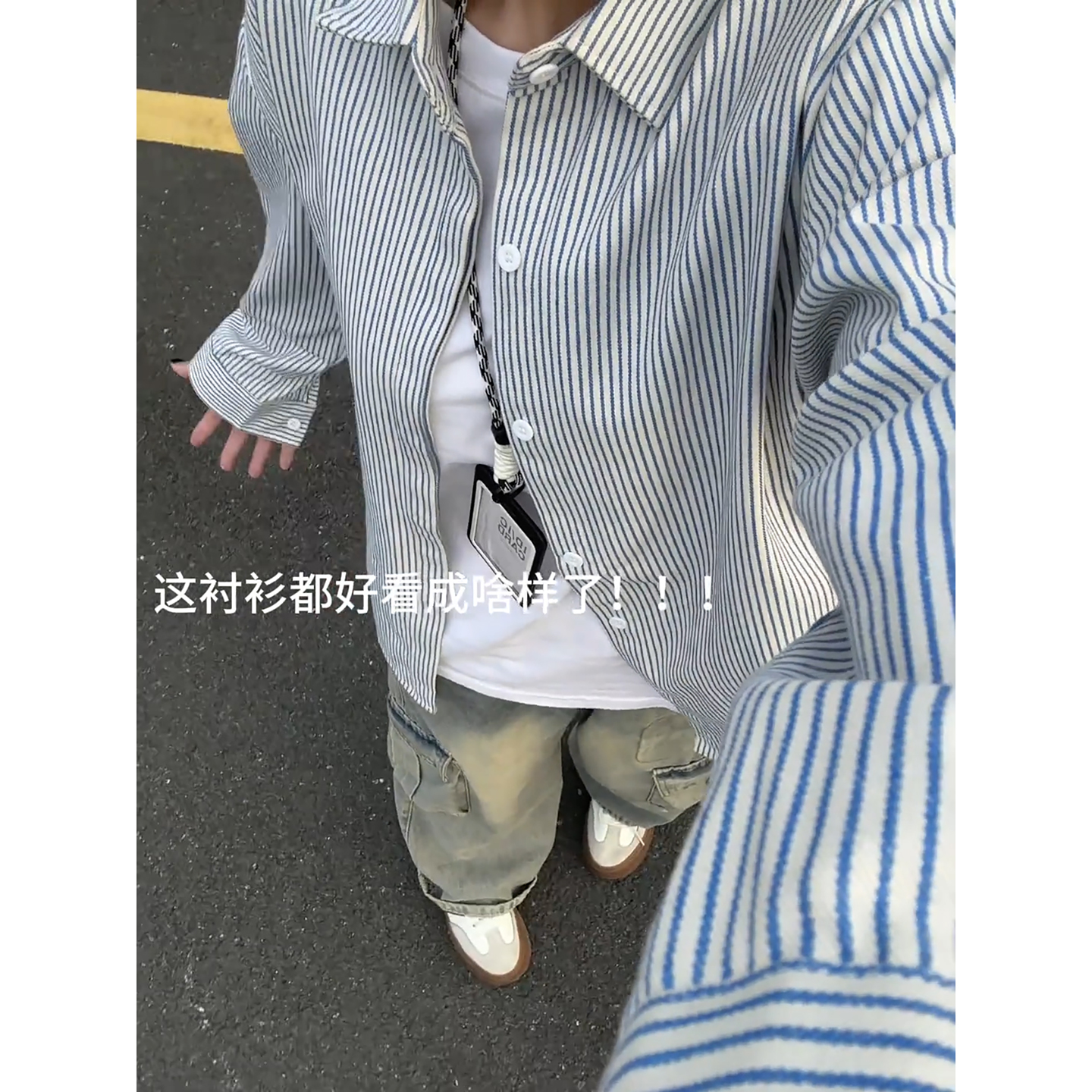 衬衣 学院风韩系情侣装 cleanfit蓝白条纹衬衫 男高级感痞帅外套美式