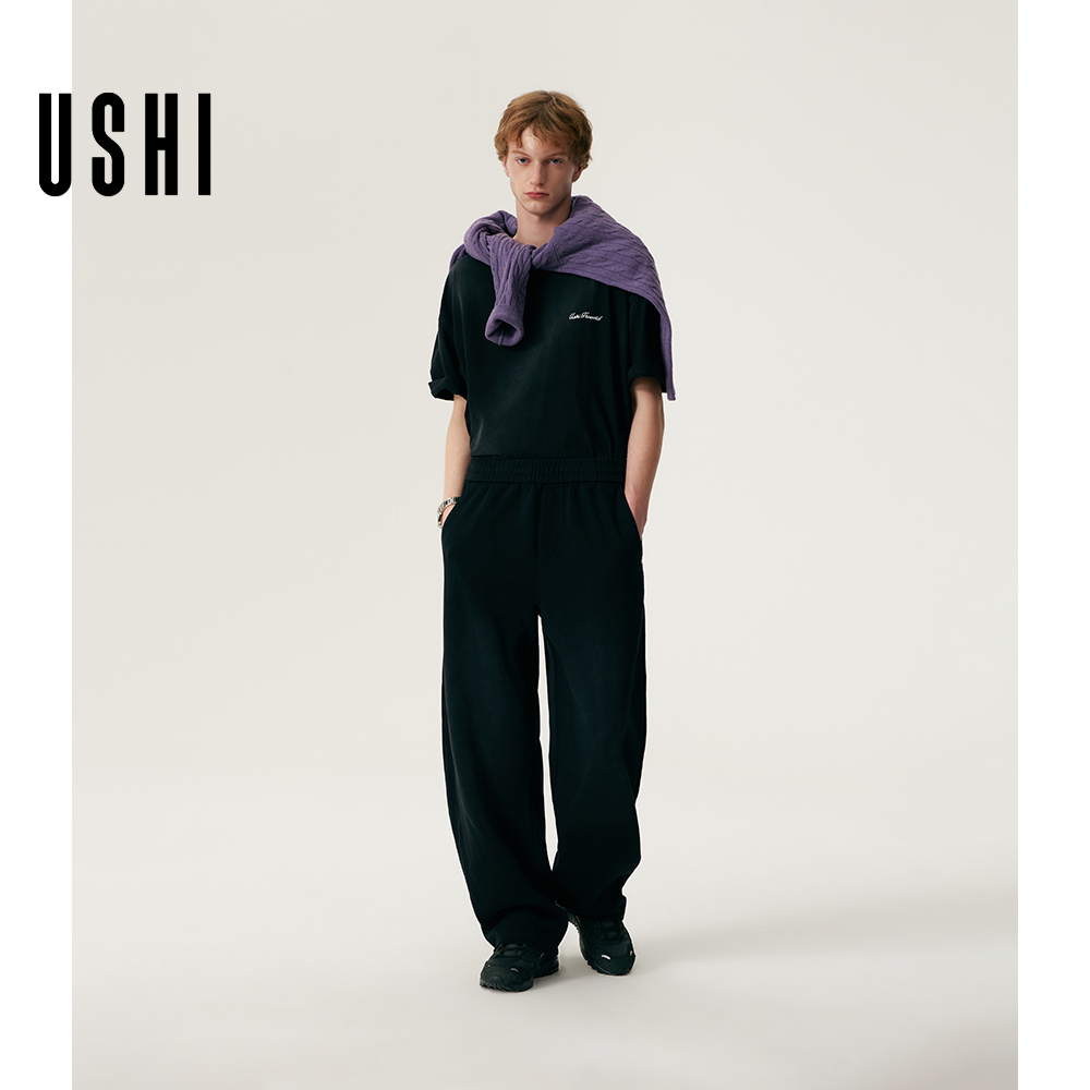 USHI悠时 男 垂感宽松系带松紧腰高弹力无束缚出街潮流休闲弯刀裤