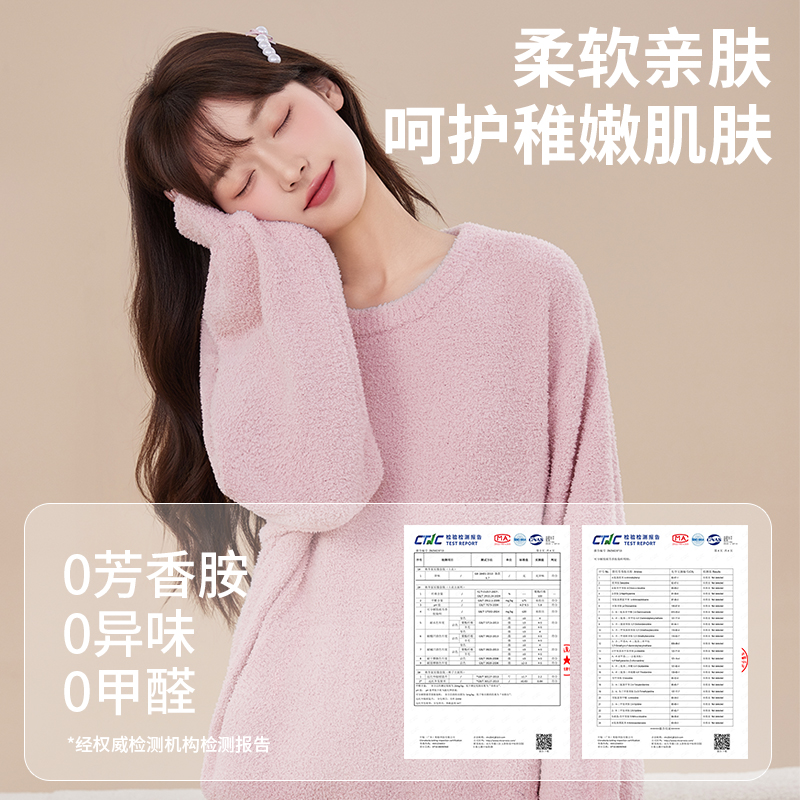 可外穿保暖内衣冬 女款 安菲雅青少年家居服套装 加厚半边绒睡衣睡裤