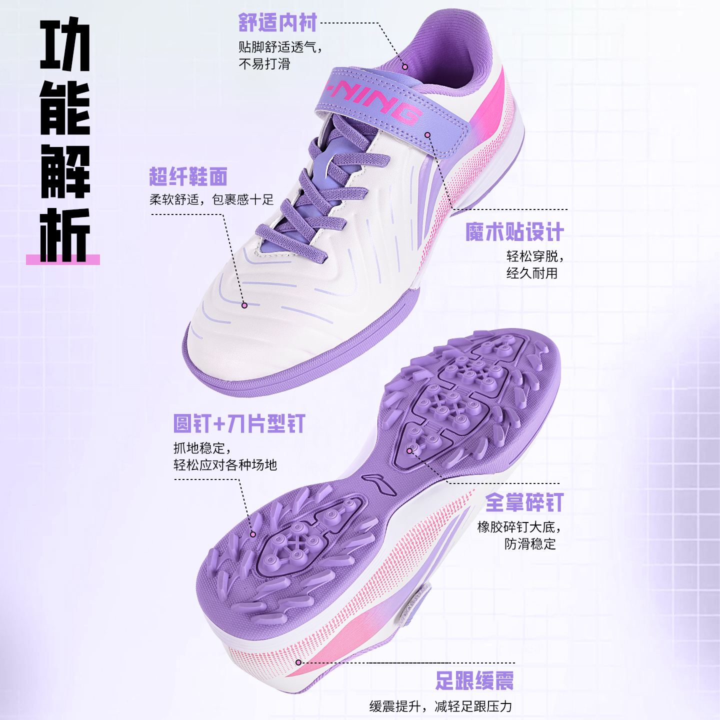 李宁儿童足球鞋 男童TF碎钉小学生少儿青少年女孩专业训练专用正品
