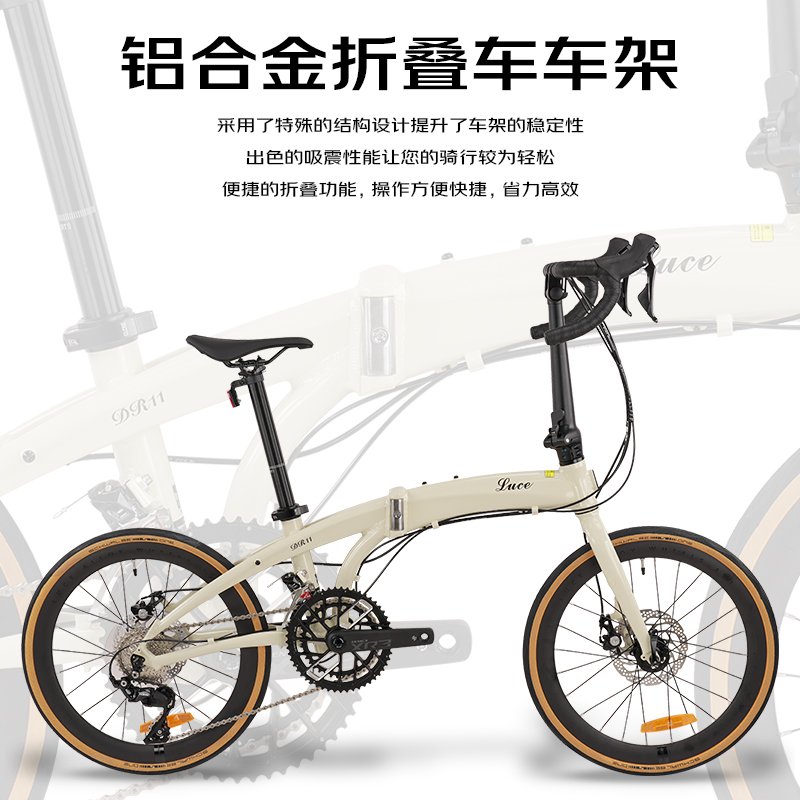 CAMP坎普 弯把折叠自行车铝合金车架前叉线拉碟刹铝合金单车 DR11