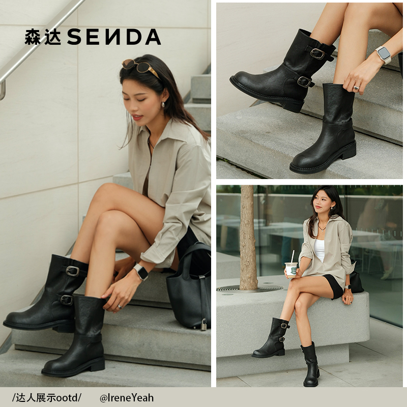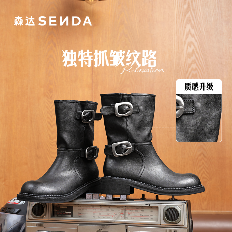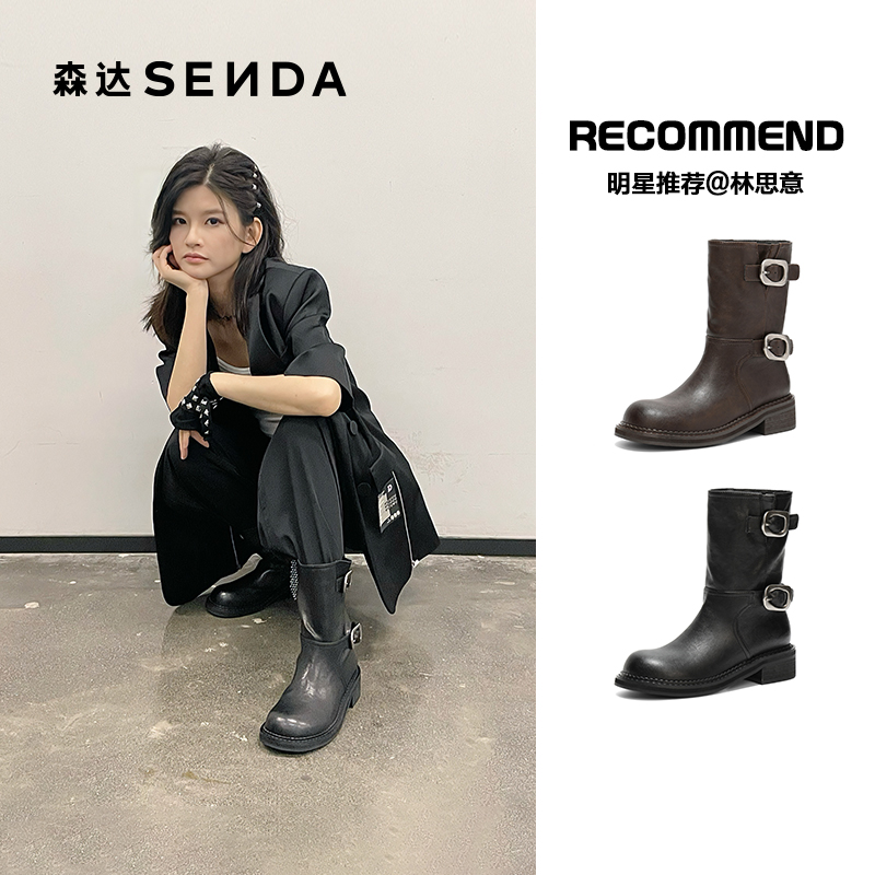 森达银河骑士中筒靴女25冬新英伦风厚底短靴ZTI45DZ5 试用 新品