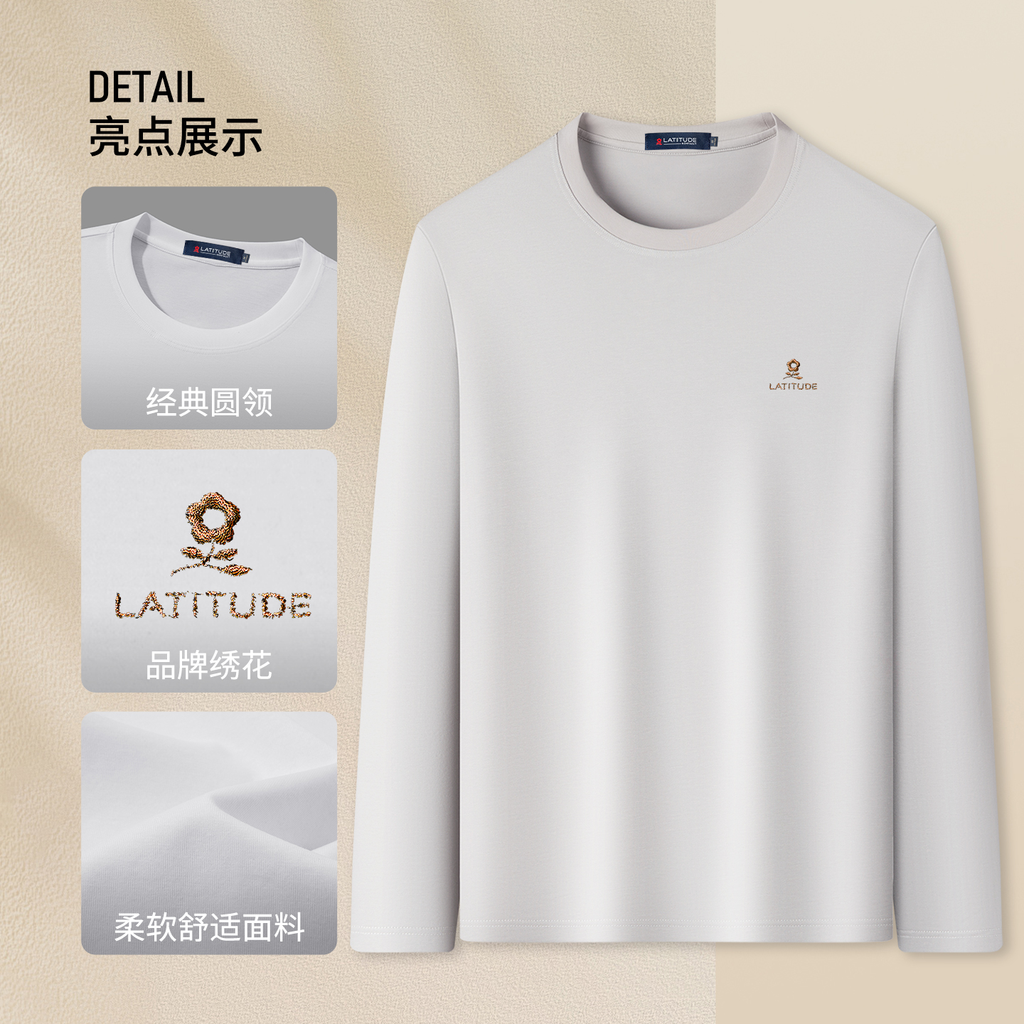 长袖 丝光棉舒弹打底男士 梦特娇圆领t恤男秋季 上衣Z 含莱赛尔纤维