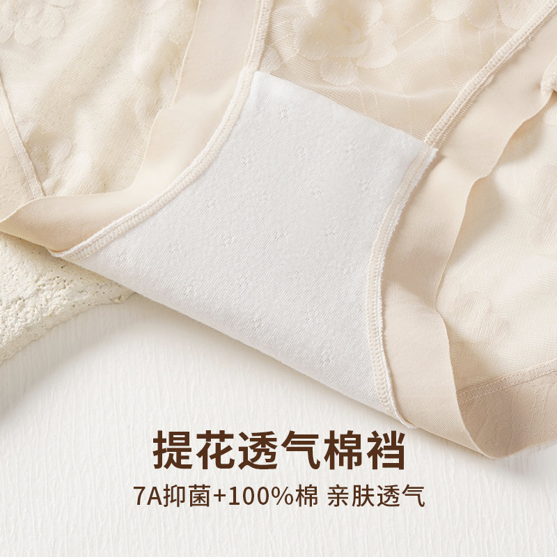 雨范高腰7A纯棉女士内裤 大包臀养护型亲肤舒适透气蕾丝高弹三角裤