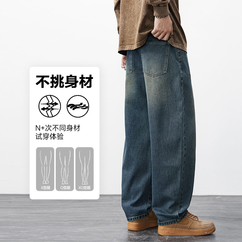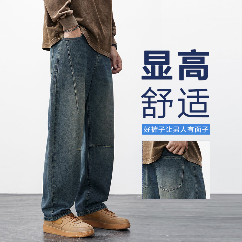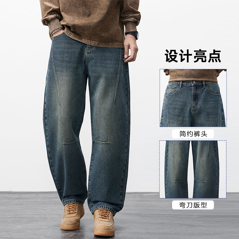 2025新款 男秋季 复古裤 子男士 KZ真维斯美式 宽松潮流直筒裤 牛仔裤